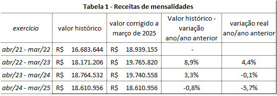 O exercício contábil da Apcef São Paulo não coincide com o ano civil.  Seu último balanço compreende  o período de abril de 2024 a março de 2025.